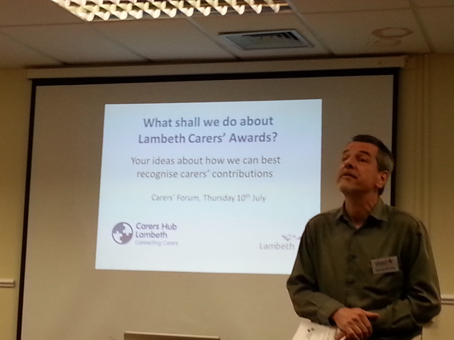 Next up was the Lambeth Carers Award. We had David Strong from the Disability Advice Service Lambeth present the following about the awards