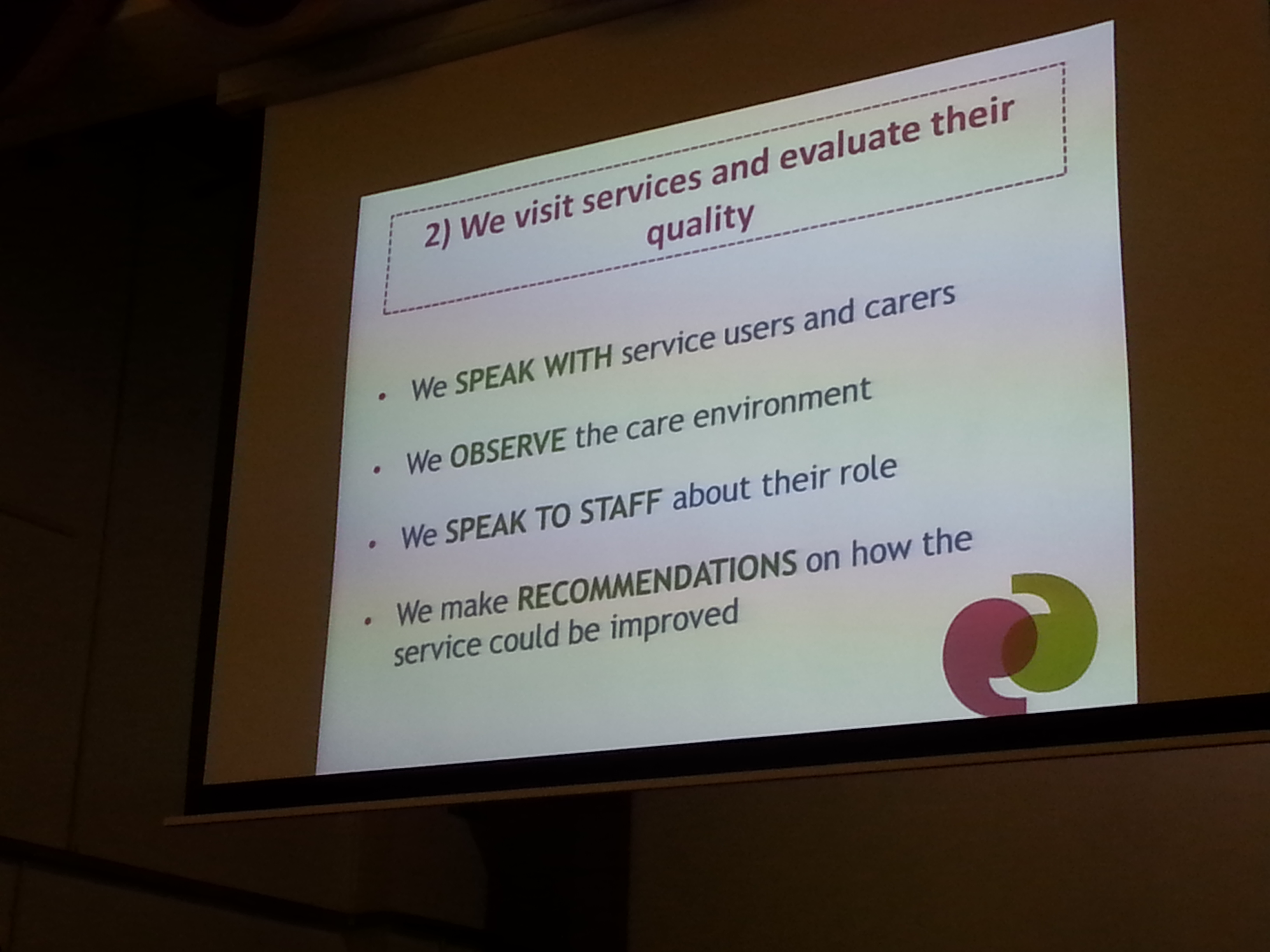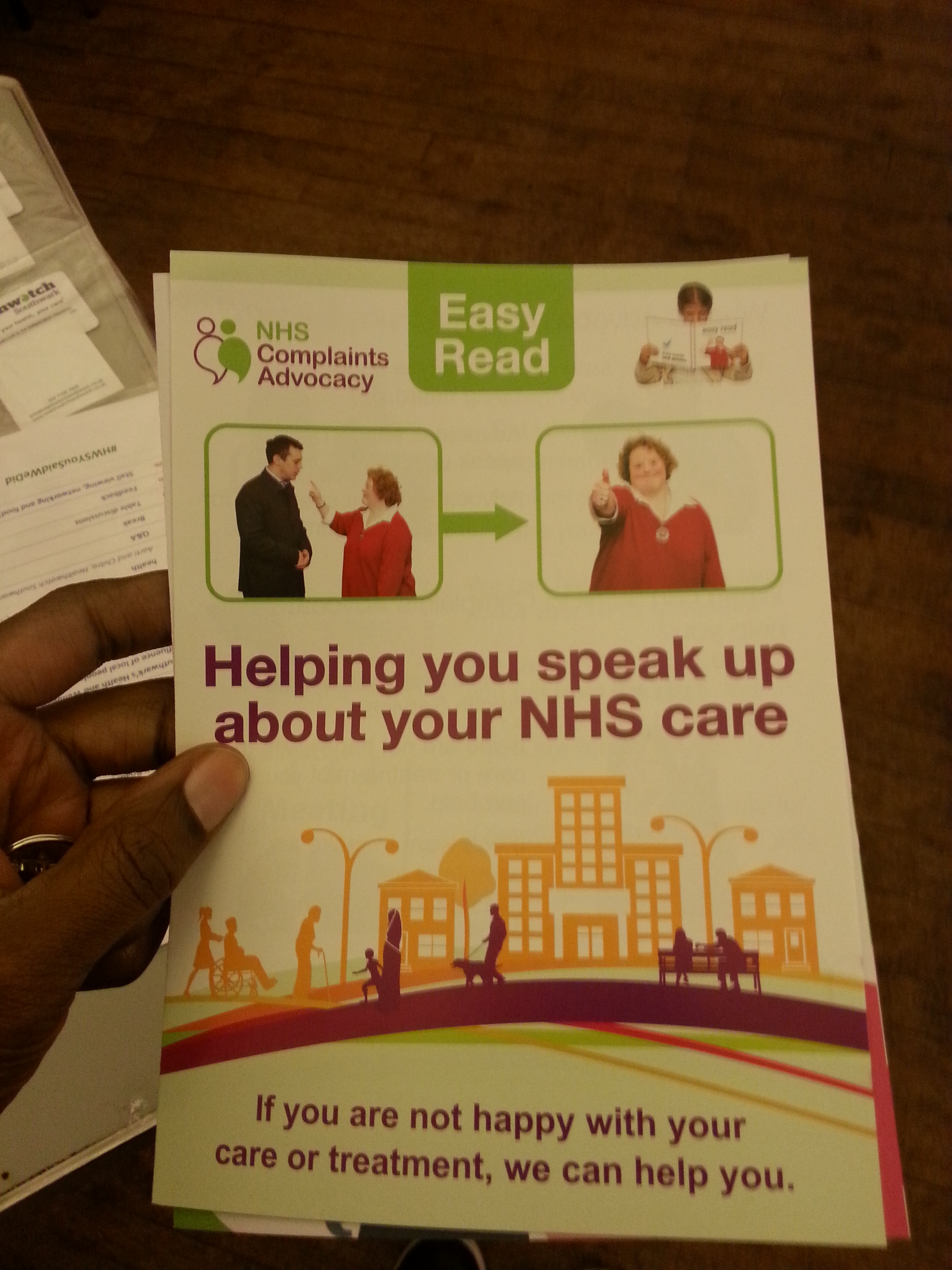 Well, most importantly, She explained what Healthwatch is all about. One of Healthwatch’s main functions is to visit services and evaluate their quality. Healthwatch volunteers tend to write reports on these services and can submit recommendations. Healthwatch representatives speak with service users, carers and staff about the use of health services.