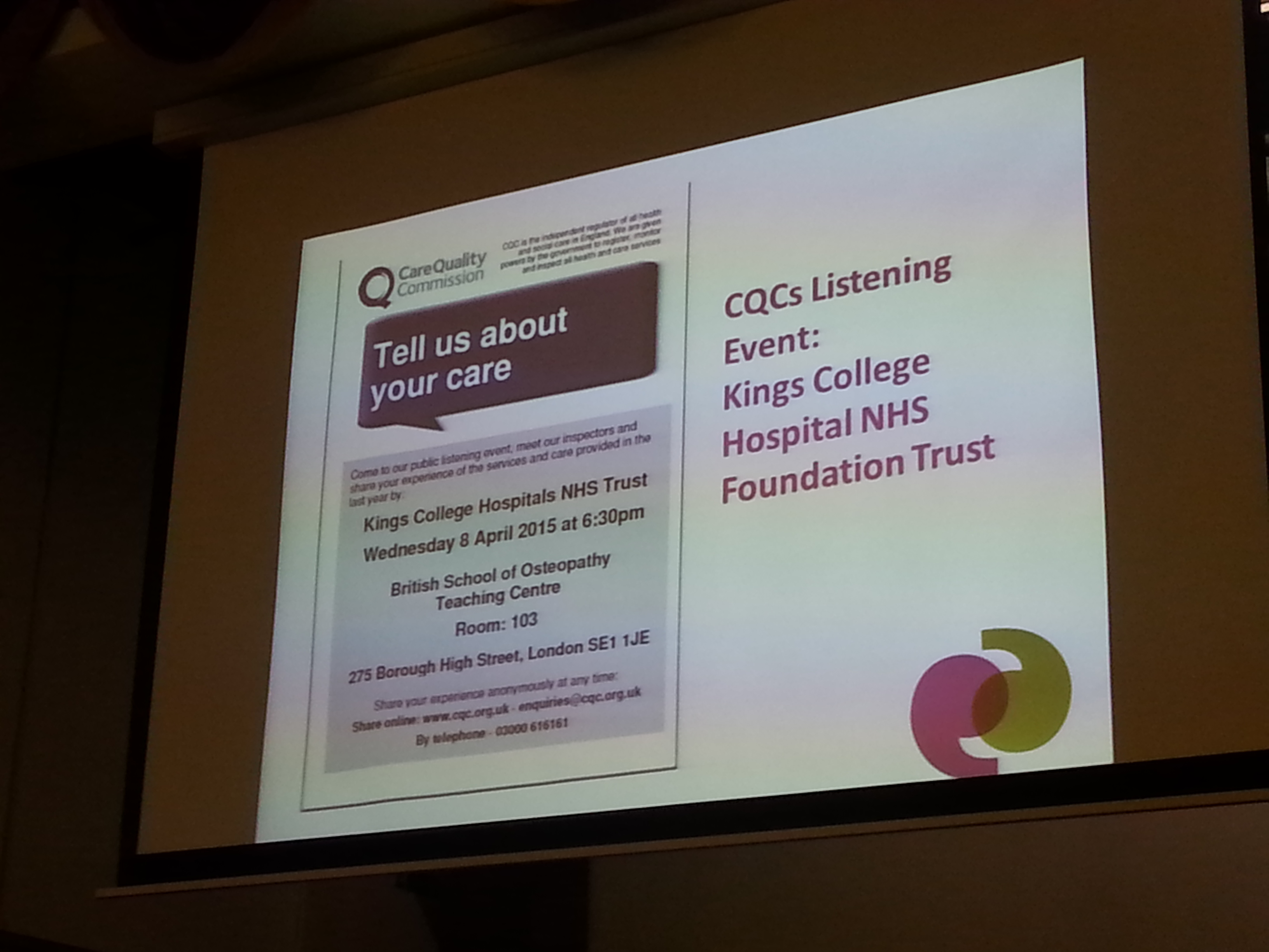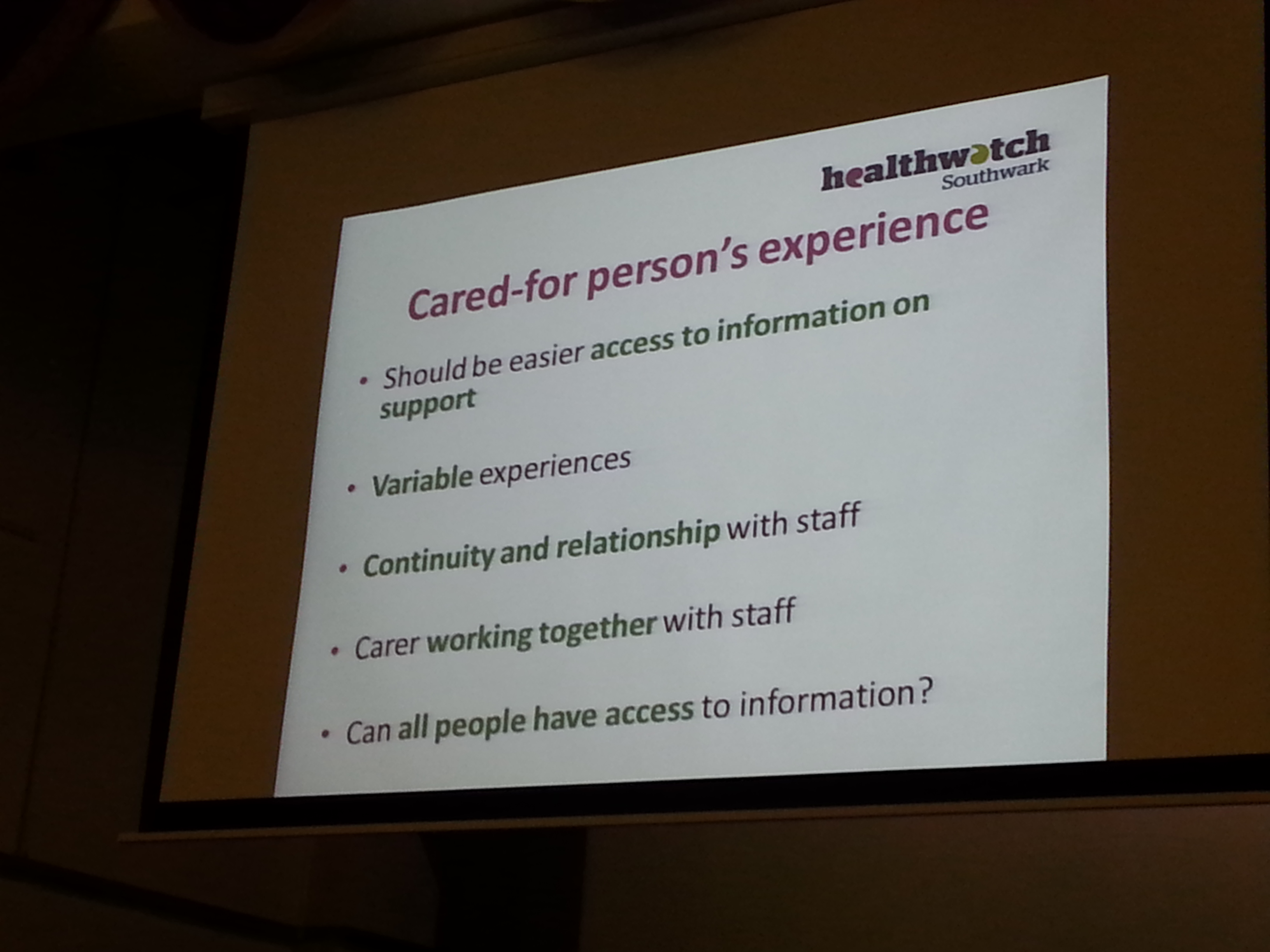So first what did we have to hear from Aarti the Healthwatch Southwark Manager?