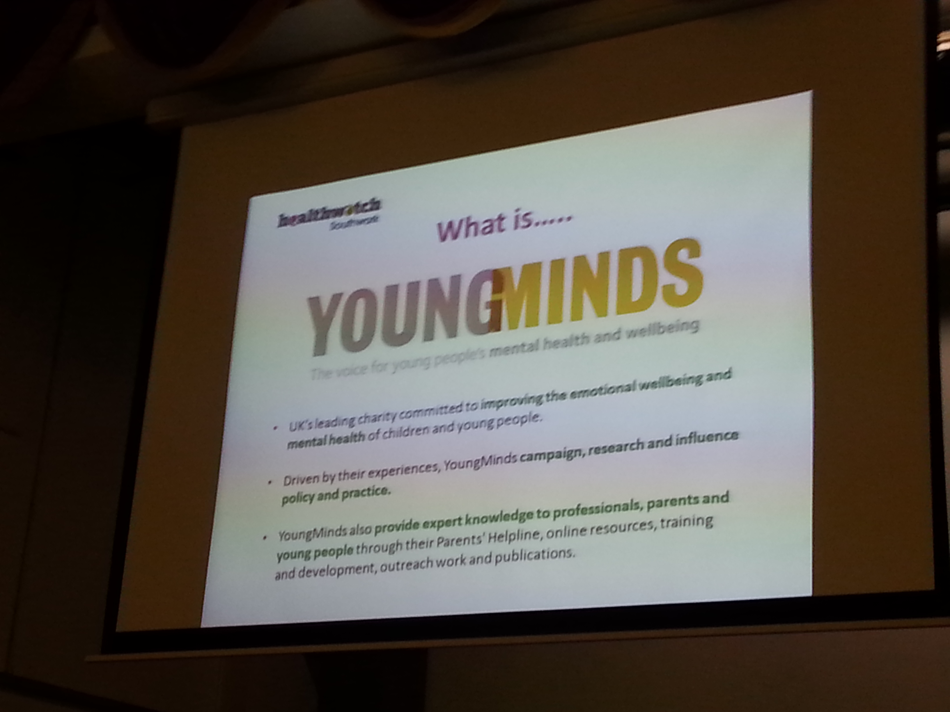The young people’s representatives also spoke about YoungMinds and how the organisation help raise and champion mental health causes for young people since unforunately young people are pressured by society and that this pressure can often result in stress, isolation, confusion which can and often causes mental ill health.