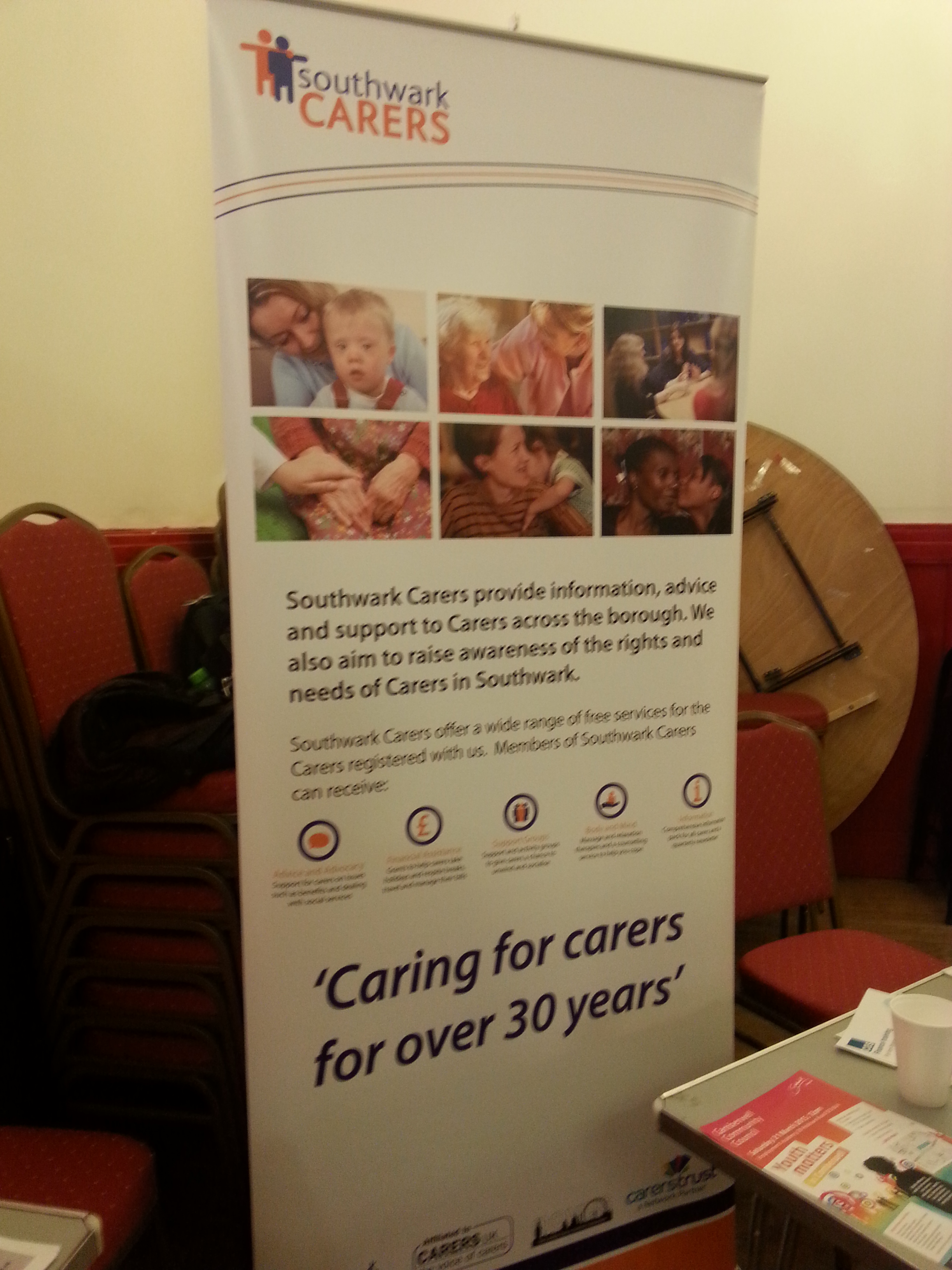 With this stall I spoke to the staff representing Southwark carers. We spoke about the new care act coming in April 2015. I was impressed with the carers discussion groups held and also impressed with the array of information shown at the stall.