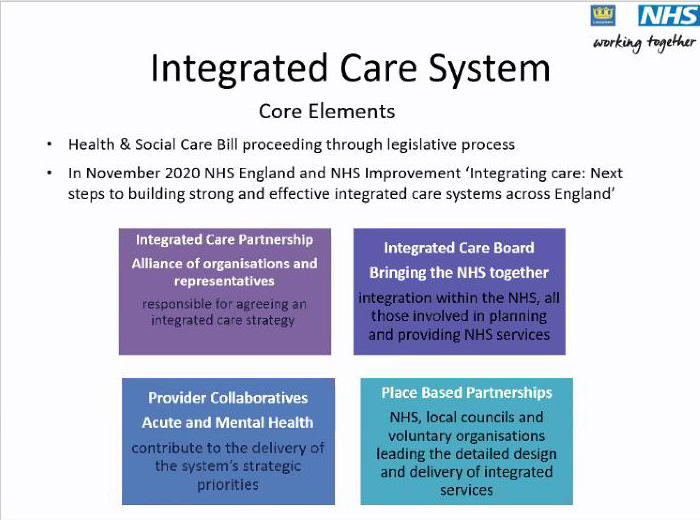 It was explained that a couple of years ago, the responsibility was around Clinical Commissioning Groups, and NHS improvement was concerned with providers, so acute trusts and some changes were implemented which led to a merger to become NHS England & Improvement.