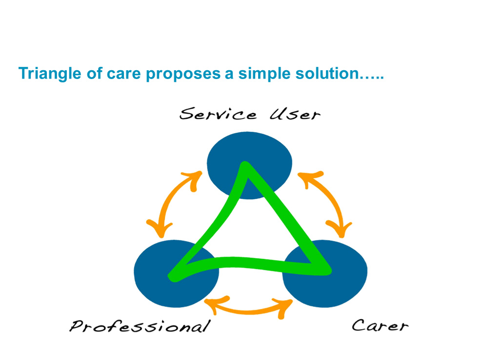 Cath mentioned that the triangle of care has been around for at least over 10 years, possibly longer. It’s a form of excellent practice when working with carers and families or in a mental health setting. For South London & Maudsley they are going to focus on the wards initially because that’s where when the triangle of care was formed, that was its first focus, it was put together by a carer Alan Worthington.
