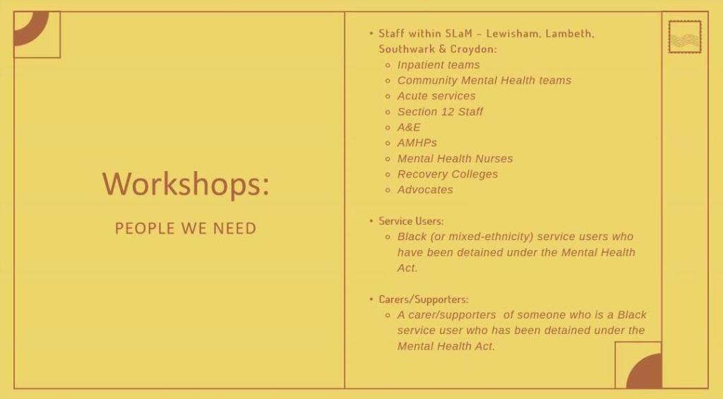 It is important to promote why having to work with staff service users, and carers and supporters to understand how to get advanced choice documents or advanced statements can work for black people.