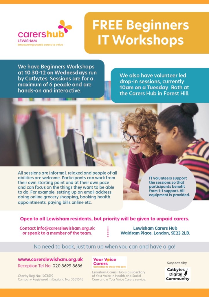 It was a struggle to access online resources before the pandemic, but it still is a challenge. Some good news, Lewisham Carers Hub have received funding to allow carers to learn about computers and accessing online information. Please see the poster below
