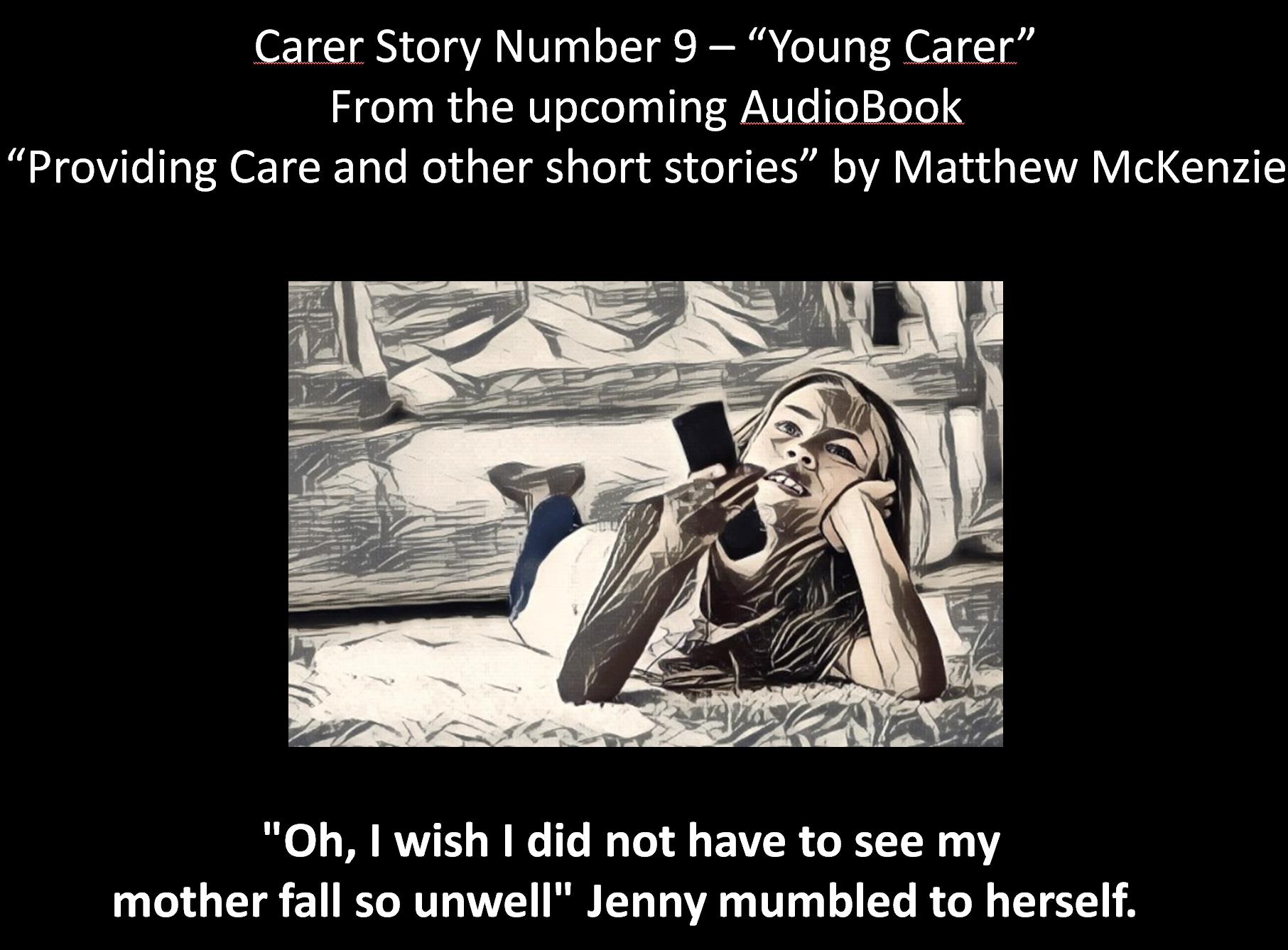 She did not know. She only went along with it. Her mother needed her and that is all she knew. It was time to care, but was it all too soon? Story number 9 from the audiobook “Providing Care & Other Short stories”. I labelled this story “Young Carer”, because I wanted to get straight to the point. What is that point you ask?