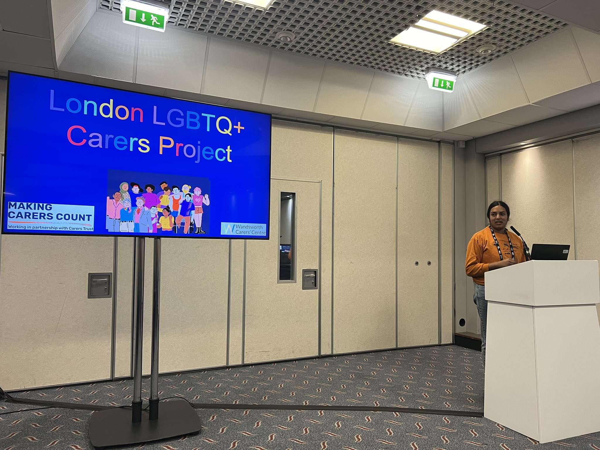 Abinaya Kamalanathan who spoke about how Wandsworth carers centre worked with LGBTQ+ carers. She is the Carers Support and Development Officer and LGBTQ+ Project Co-ordinator at Wandsworth Carers Centre