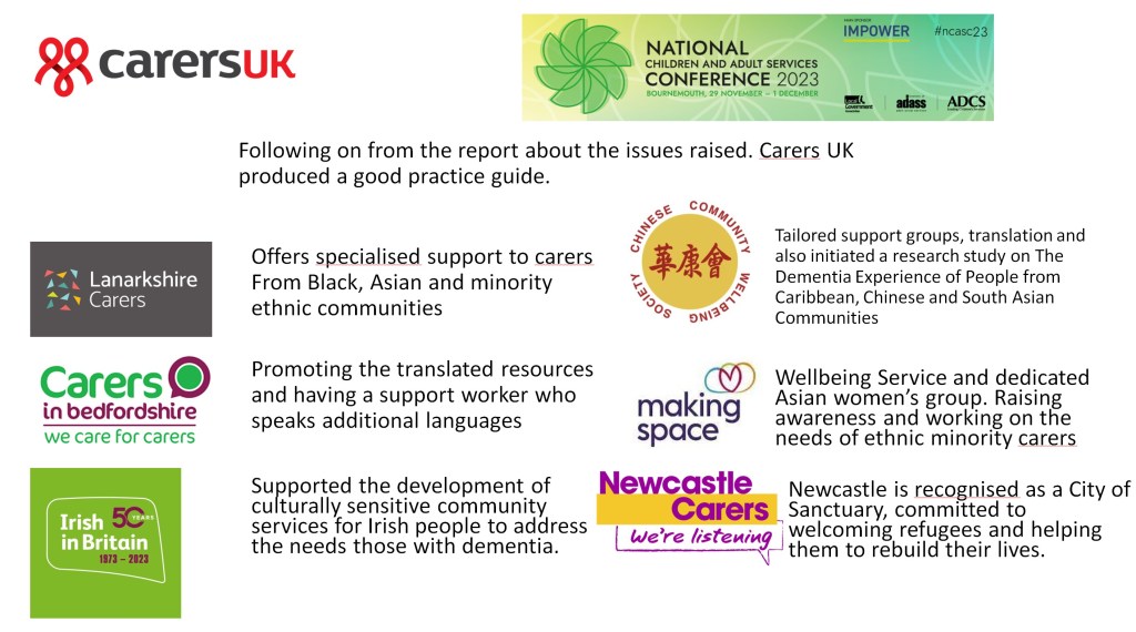 As co-chair of the Carers UK ethnic advisory group, we brought together charities and carers from diverse groups who provided feedback and updates on how the community can support carers from diverse groups. You can see the briefing below.