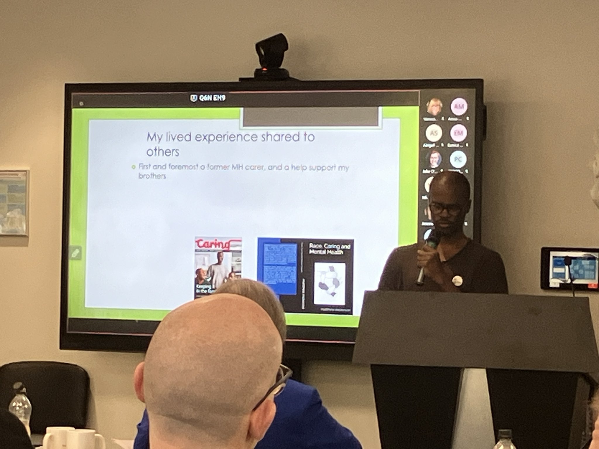 Welcome to a brief update of my ethnic mental health carers forum. For this month we were joined by South West London & St George research team. The team from a training company introduced a cultural capability training program aimed at reducing race and ethnic disparities in mental health care, while Matthew presented a summary of various reports highlighting health inequalities faced by ethnic minorities in the UK. The Forum also discussed the importance of advocacy for carers, the challenges of engaging with diverse communities. A carer from South Yorkshire also discussed the potential for setting up a group to support black people in the area.