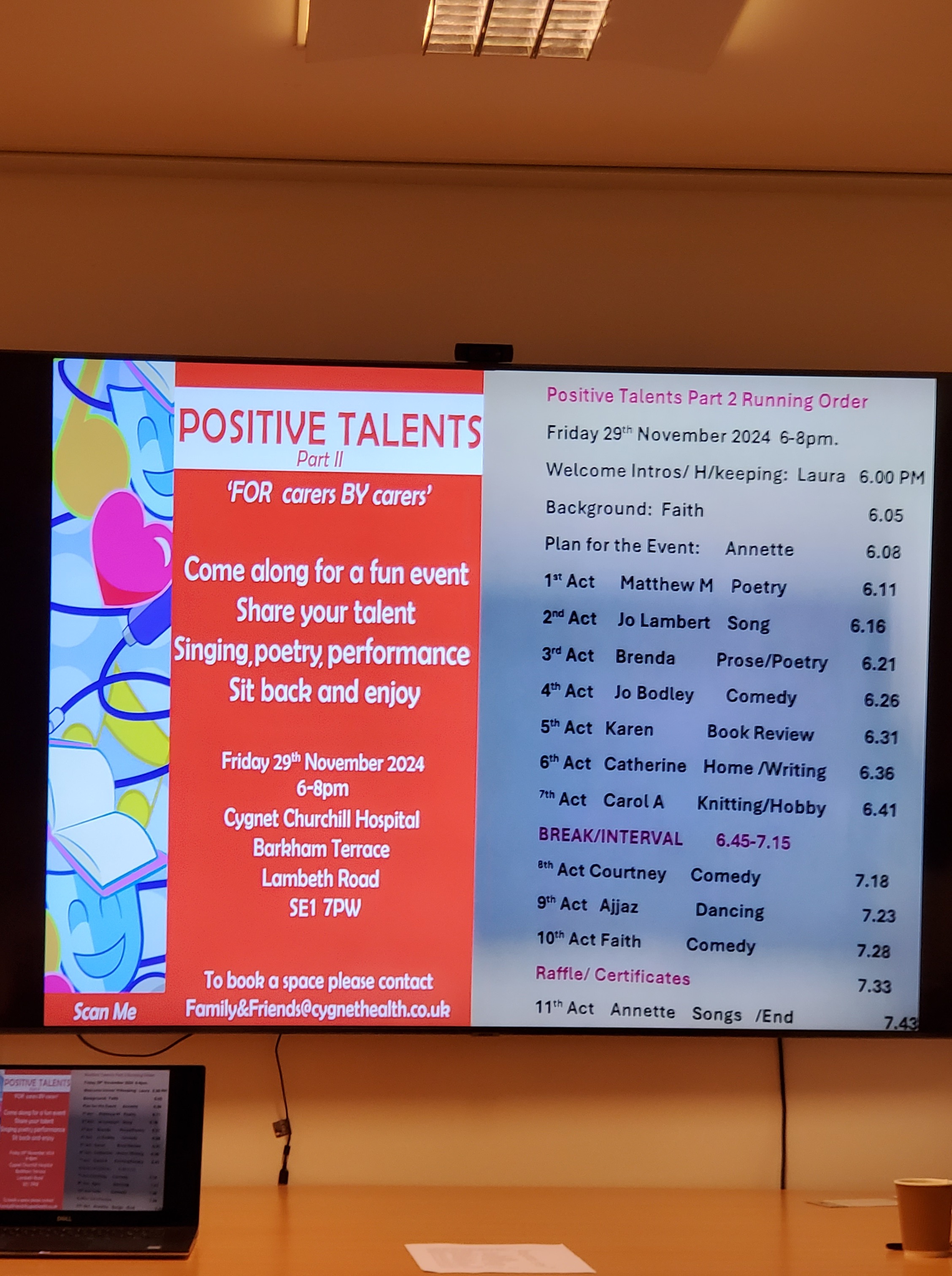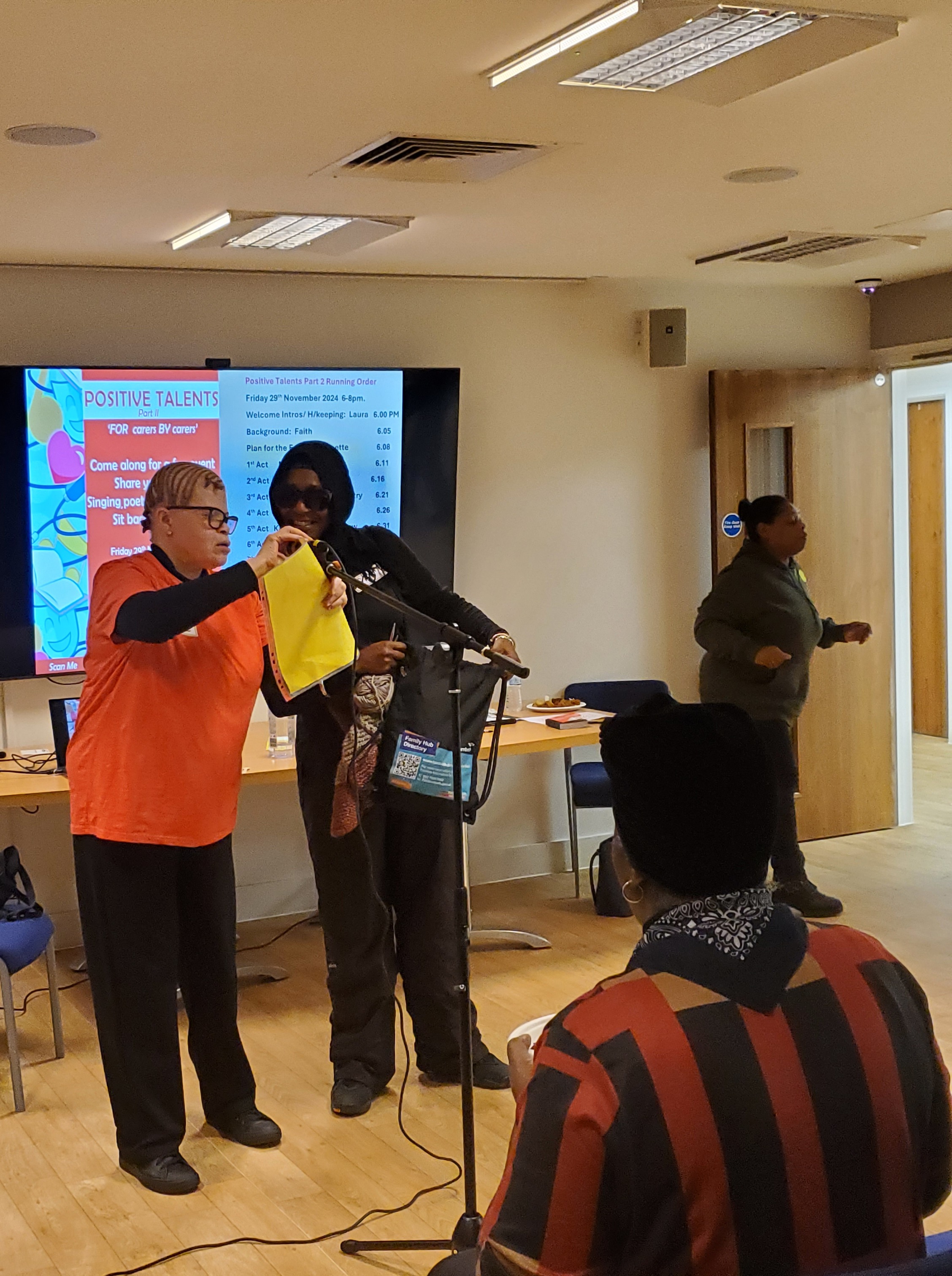The Positive Talents – Part 2 event took place on friday 29th of November 2024. For this event we had an amazing range of performing acts, including poets, singers, dancers, book readings and interests that those with lived experience of caring promoted.