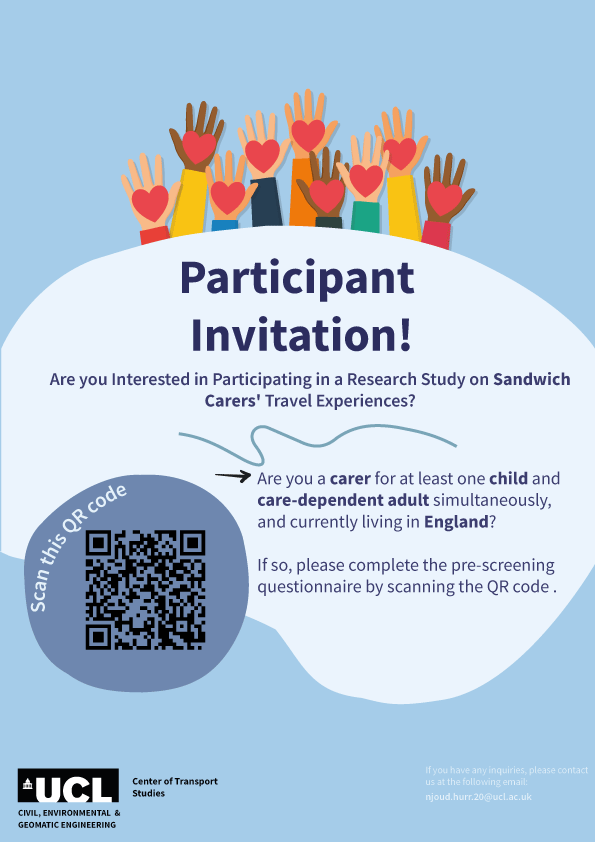 At UCL’s Center for Transport Studies, They are conducting an important research study exploring the travel experiences of sandwich carers, and we want to hear from you.