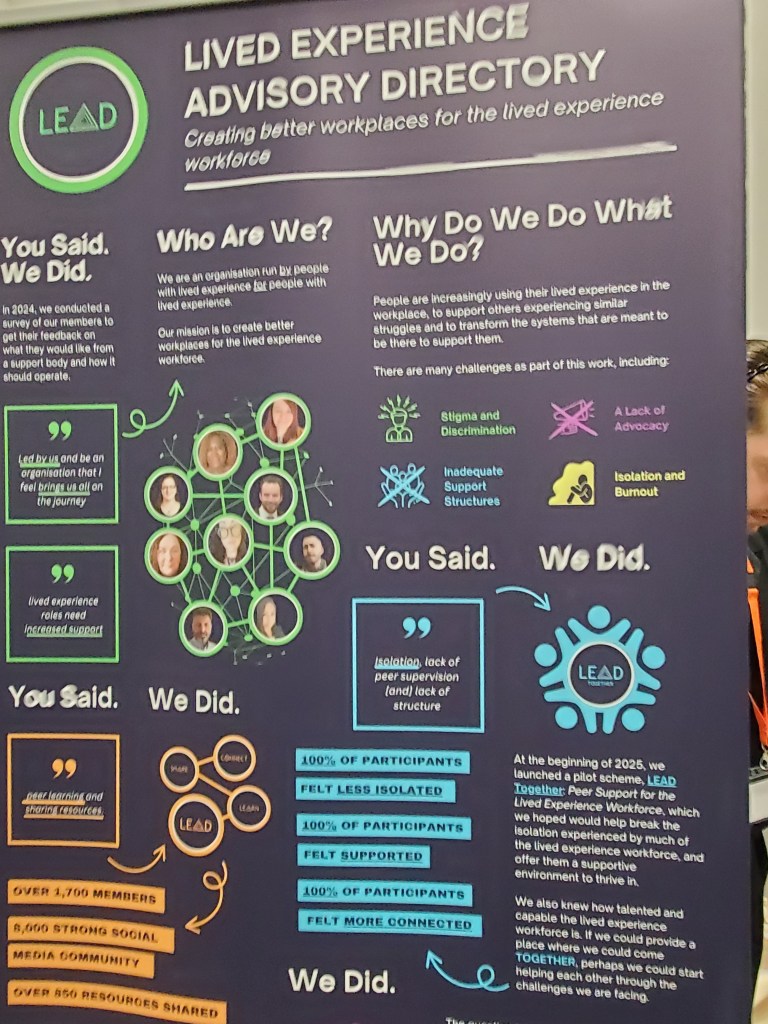 Delegates from organisations including Imroc, Lived Experience Advisory directory, the Design and Mental Health Network, Creative Football, and Rethink Mental illness joined by a broad coalition of service users, family carers, NHS commissioners, students, and policy shapers to network, share, and shift perspectives.