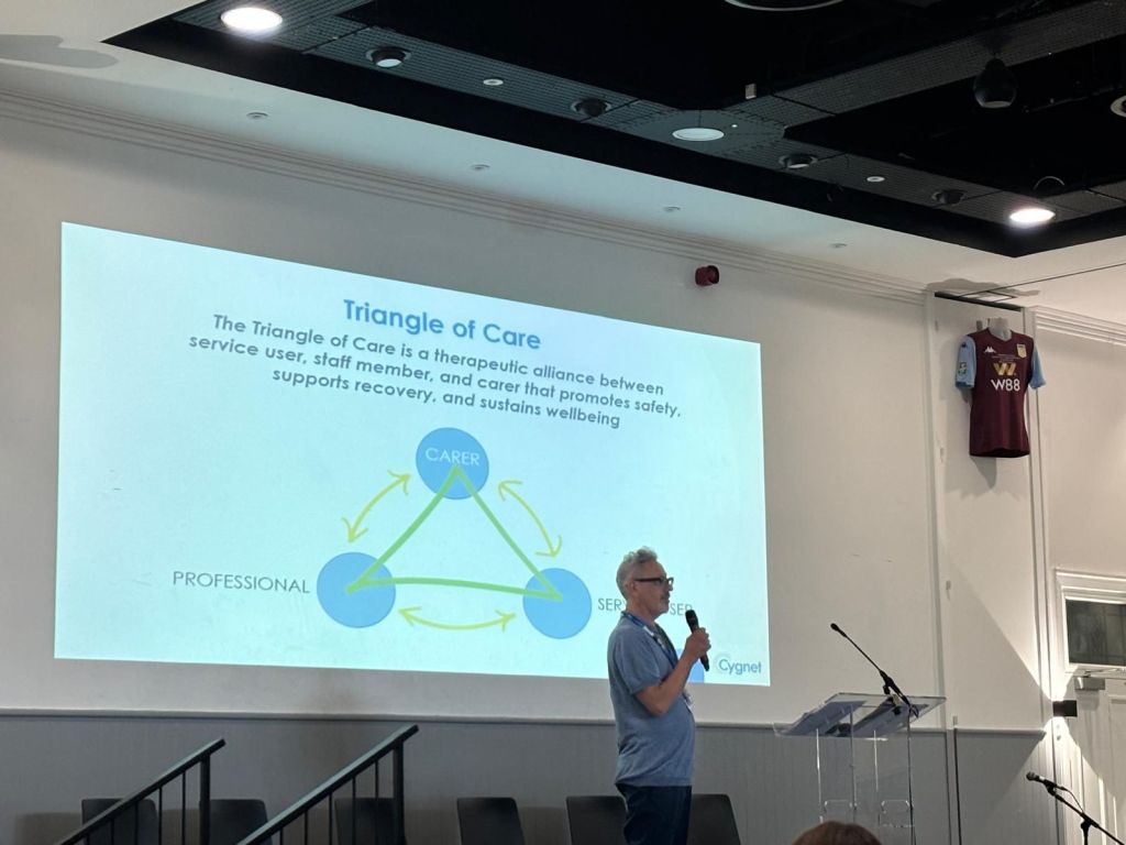 Julian focused on the Triangle of Care, a model that promotes a therapeutic alliance between the service user, the professional, and the carer.