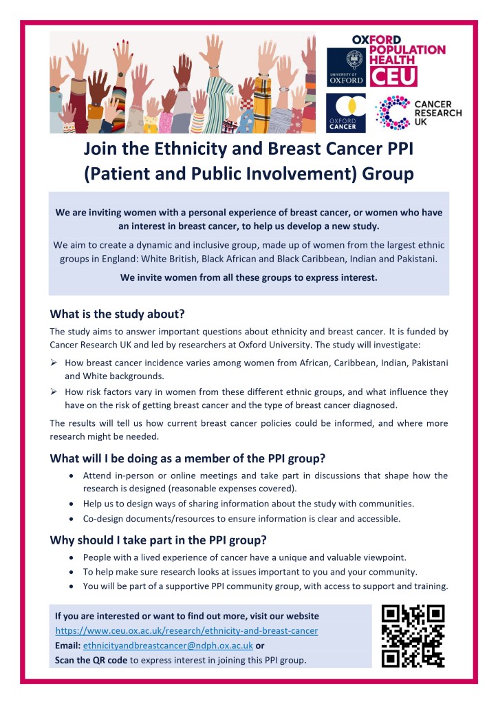 🔹 Email: ethnicityandbreastcancer@ndph.ox.ac.uk