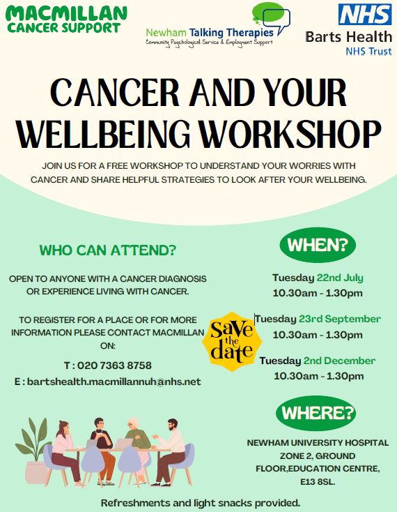 Cancer and Your Wellbeing Workshop – Newham University Hospital