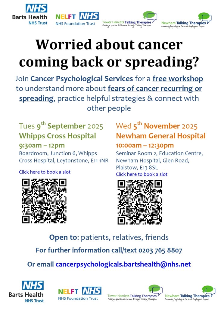 Fears of Cancer Recurrence (FoCR) Workshops – Barts Health Cancer Psychological Services