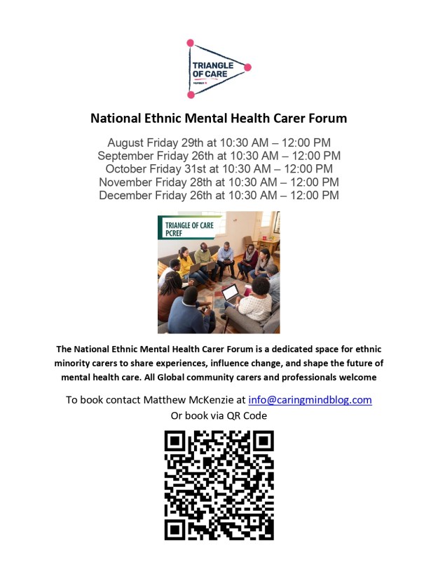 In August, the online National Ethnic Mental Health Carer Forum came together once again to confront difficult but necessary conversations about systemic racism, discrimination, and the experiences of ethnic minority carers within health and social care. The forum, hosted by Matthew McKenzie, provided a platform for carers, professionals, and researchers to share insights, frustrations, and plans for change.