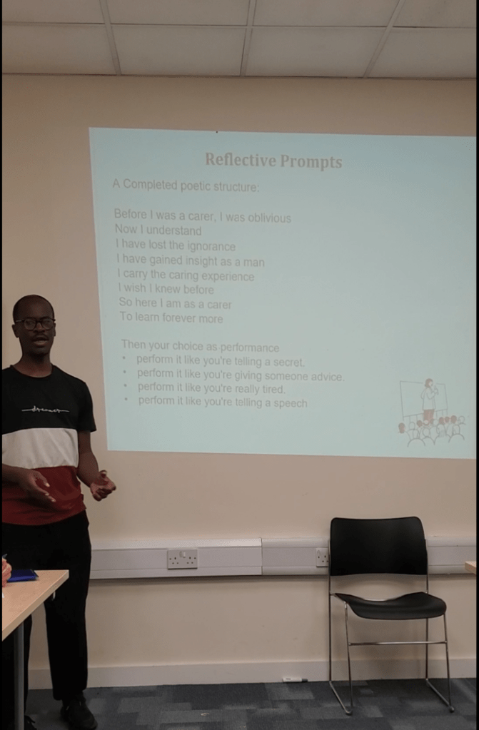 For many carers, life can feel isolating, exhausting, and invisible to wider society. Poetry offered participants a way to give voice to those emotions. As I reminded carers, “Poetry gives shape to what’s hard to say” — even if it’s just a few lines scribbled on paper, those words can carry truth, comfort, and even influence change.