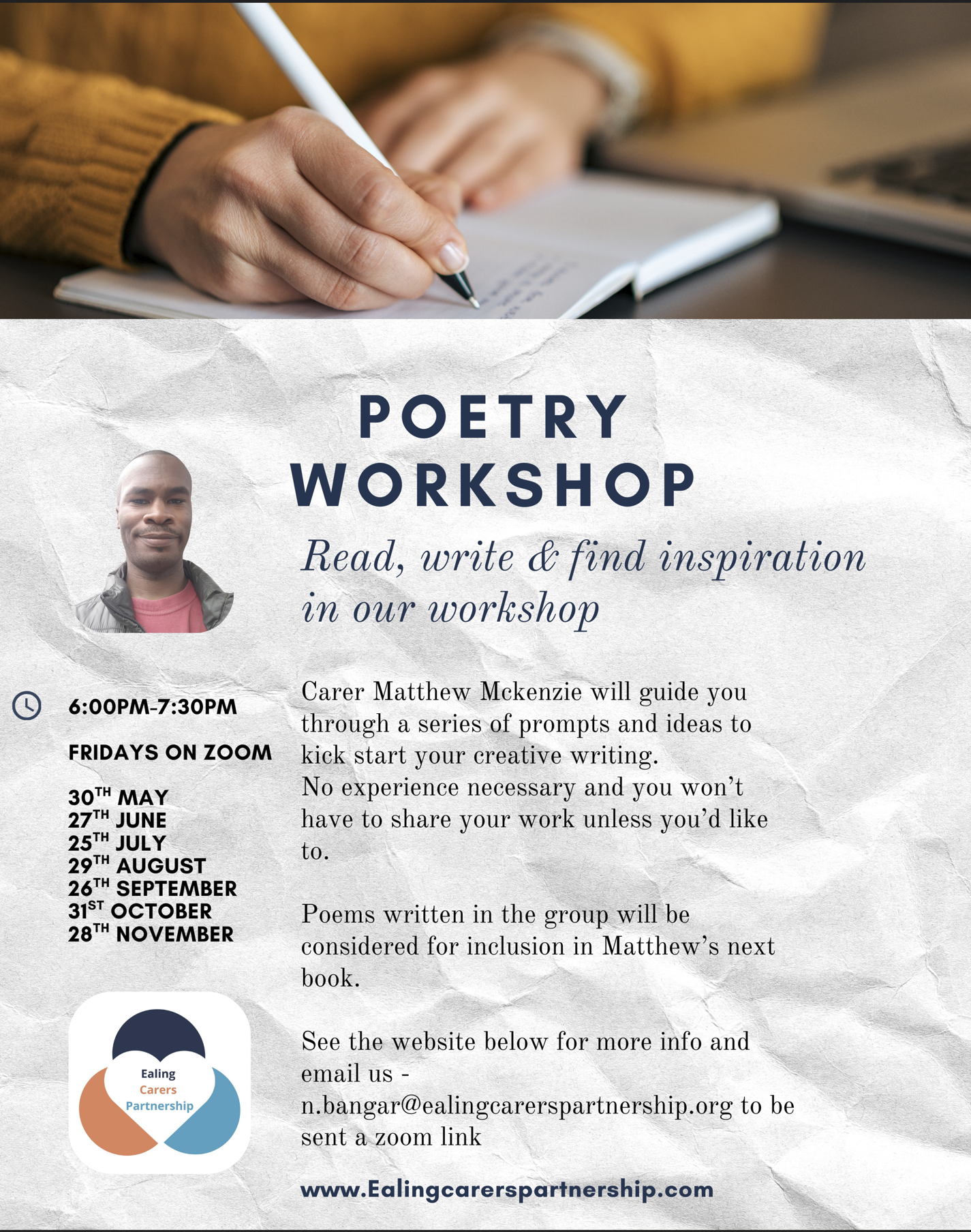 On the 18th of September, West Ealing Library once again became a hub of creativity, reflection, and connection as carers gathered for our second poetry workshop. Guided by carer activist and writer Matthew McKenzie, the session offered not just writing prompts, but a safe and supportive space to explore the healing power of words.