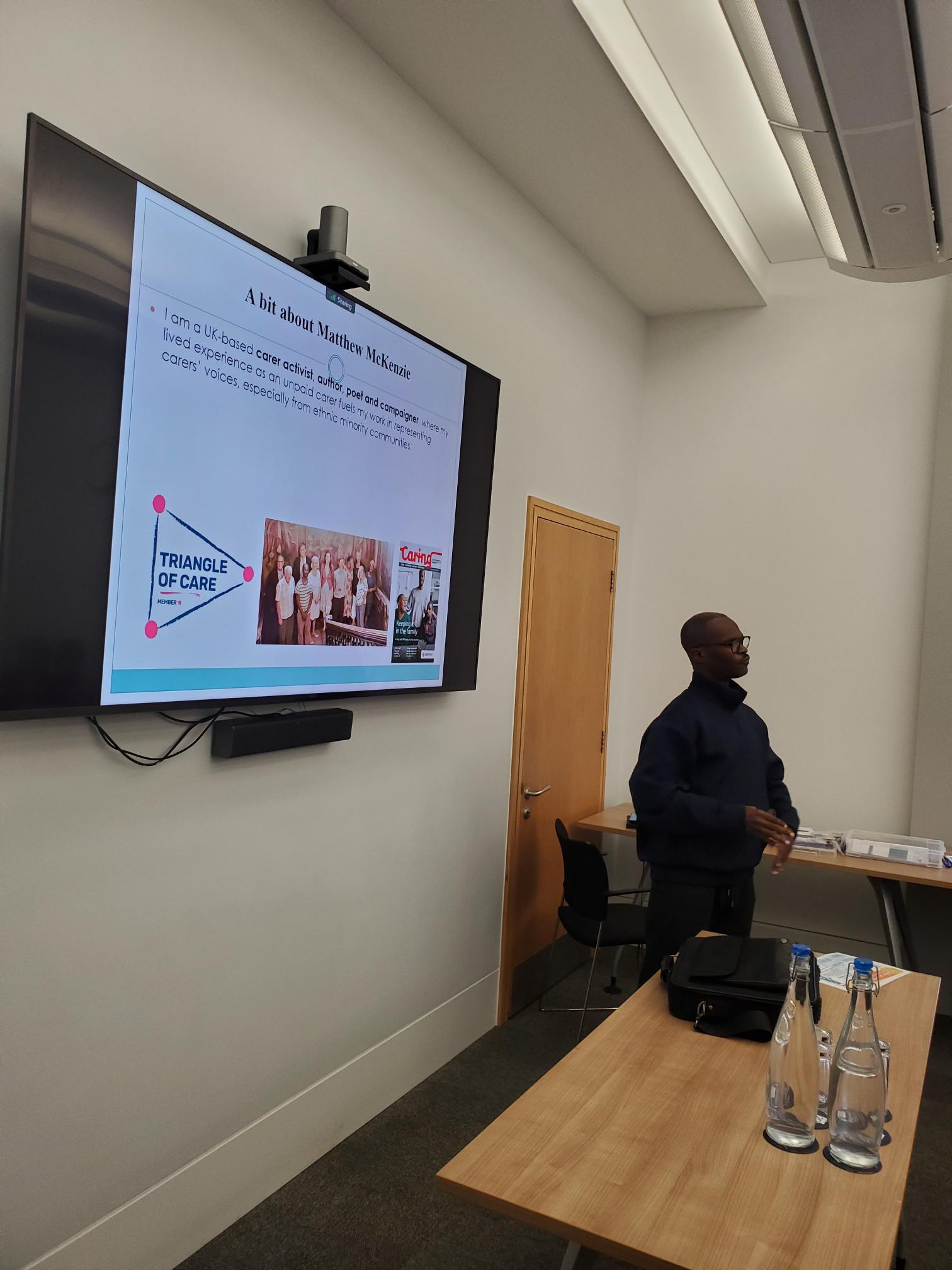 I explained that carers often hold a deep understanding of the person they support insights that can make a real difference if professionals take the time to listen and involve us from the start, not as an afterthought. Drawing on my work with Carers UK, the Carers Trust, and the Triangle of Care as many nurses from the mental health trusts were members of triangle of care programme., I spoke about how true co-production is built on trust, openness, and shared learning.
