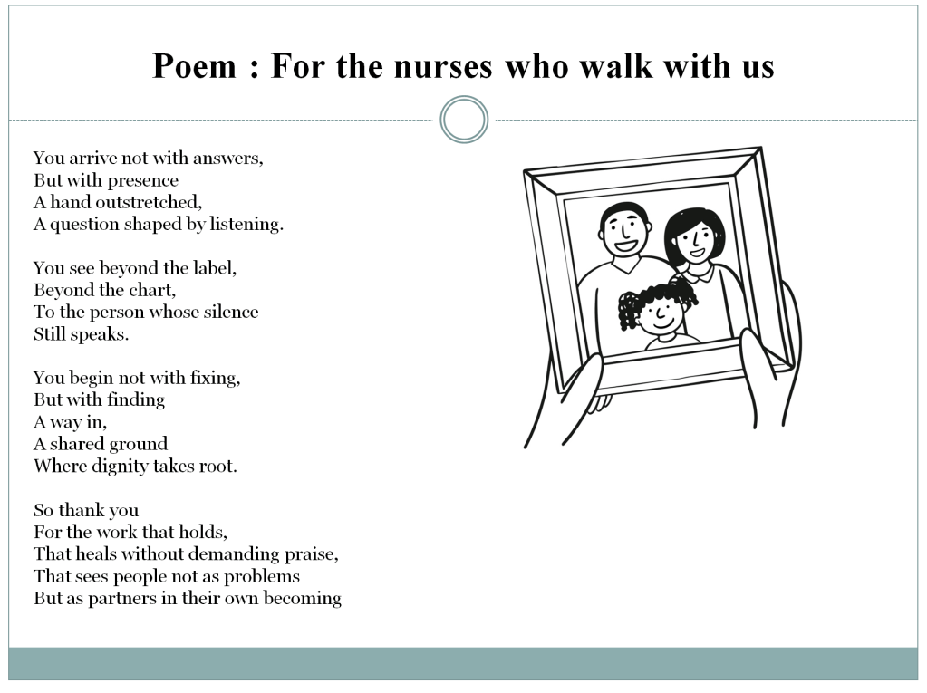 I read a poem I had written to honour the compassion and resilience of those in the room a piece I called The Nurses Who Walk With Us.