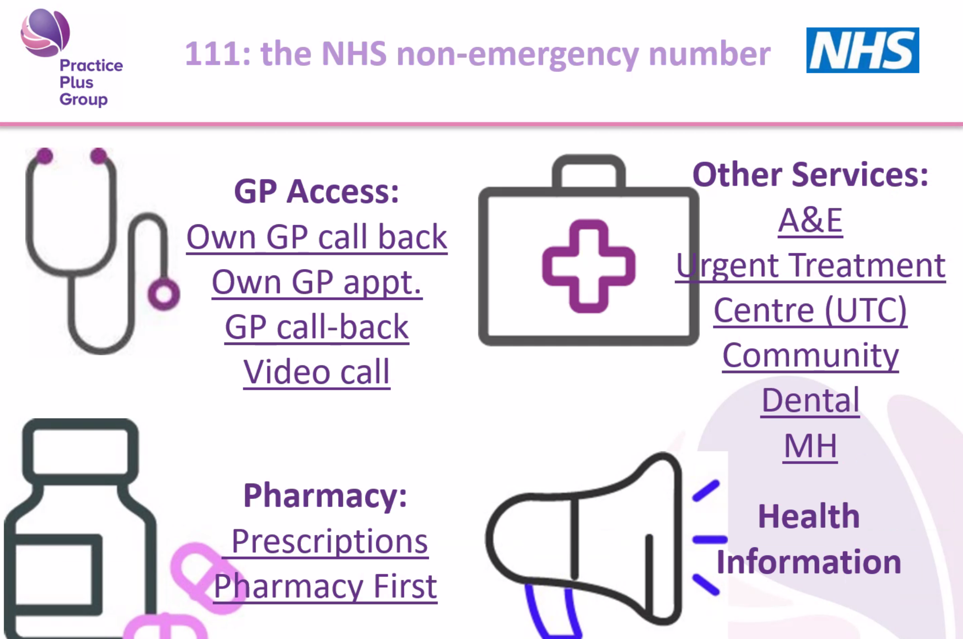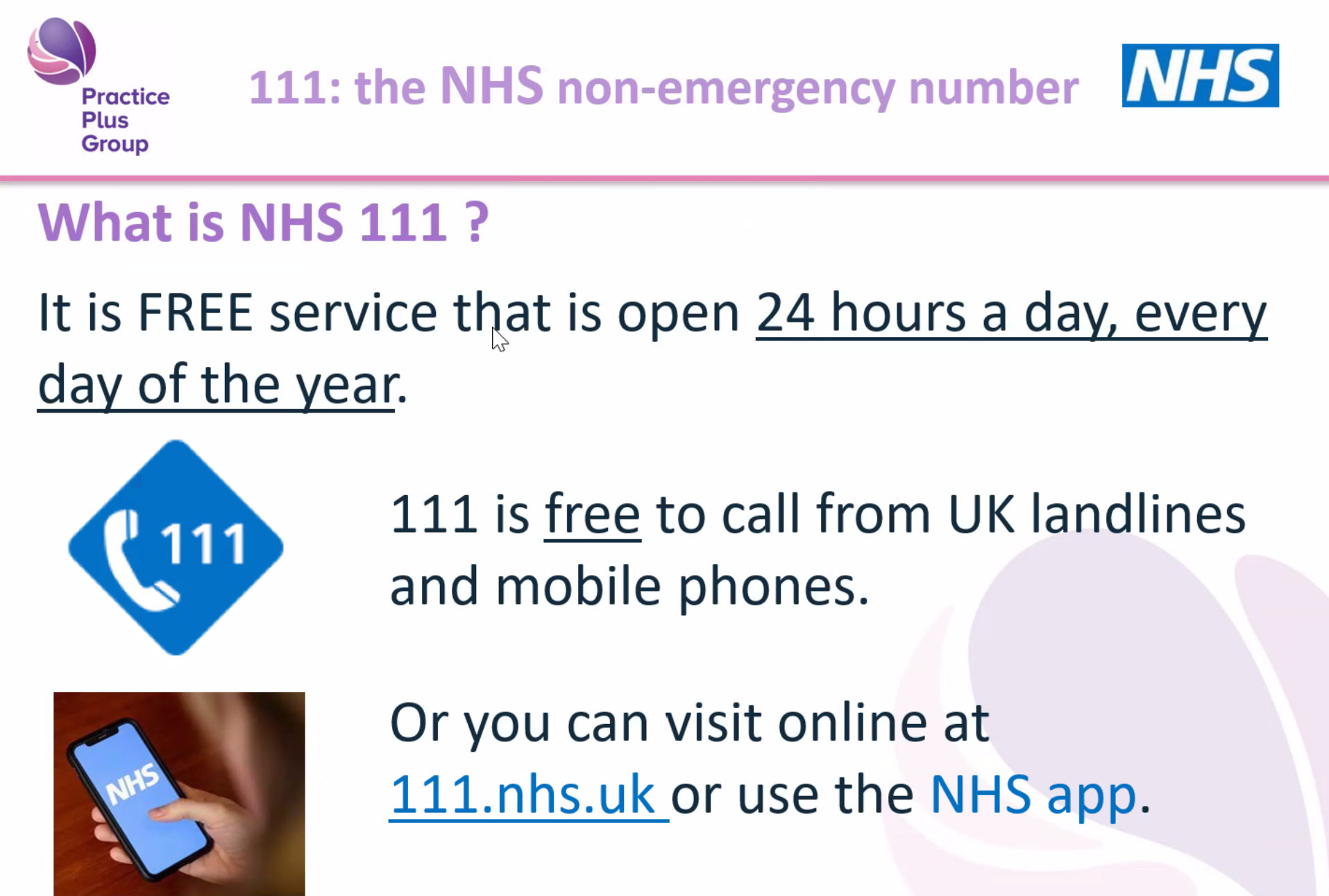 • Always keep your phone nearby when waiting for a callback; 111 will try only three times.