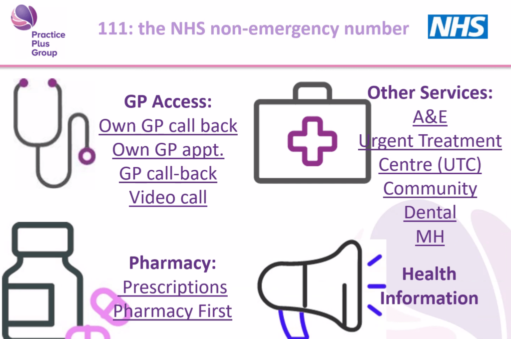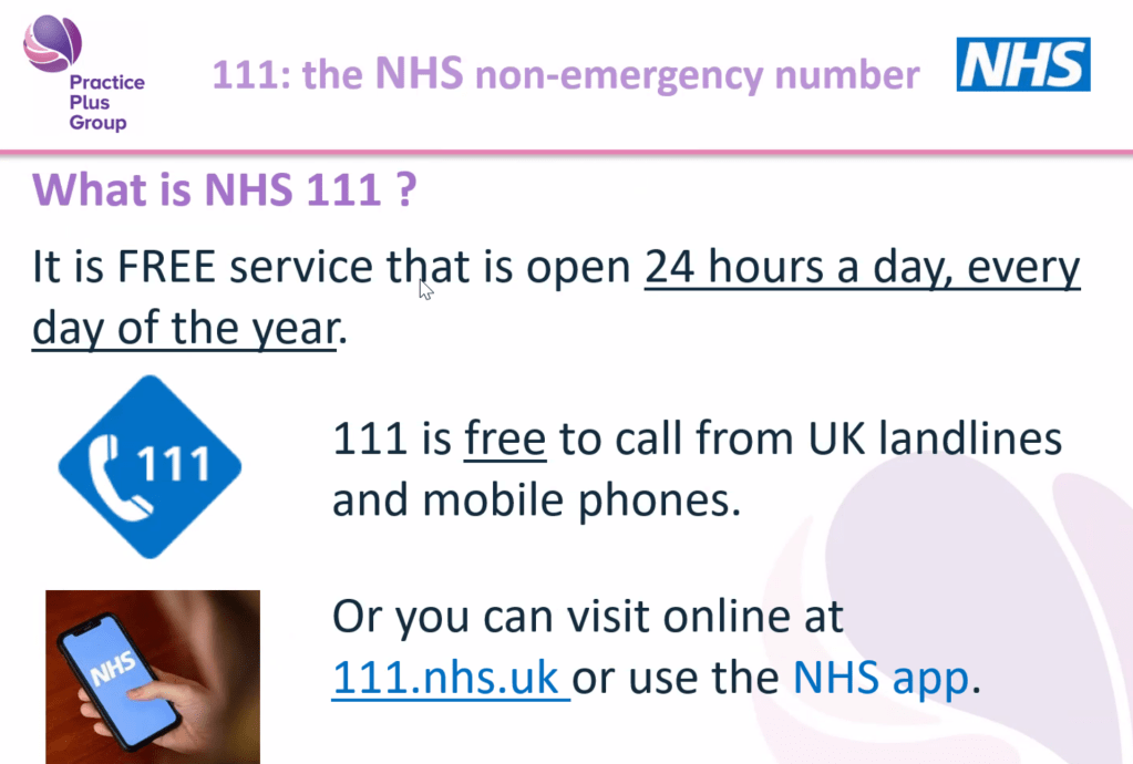 Many carers know the NHS 111 number exists, but few realise the range of services behind it. Dal explained that 111 is a free, 24/7 service (including weekends and holidays) designed for urgent health concerns that are not life-threatening.