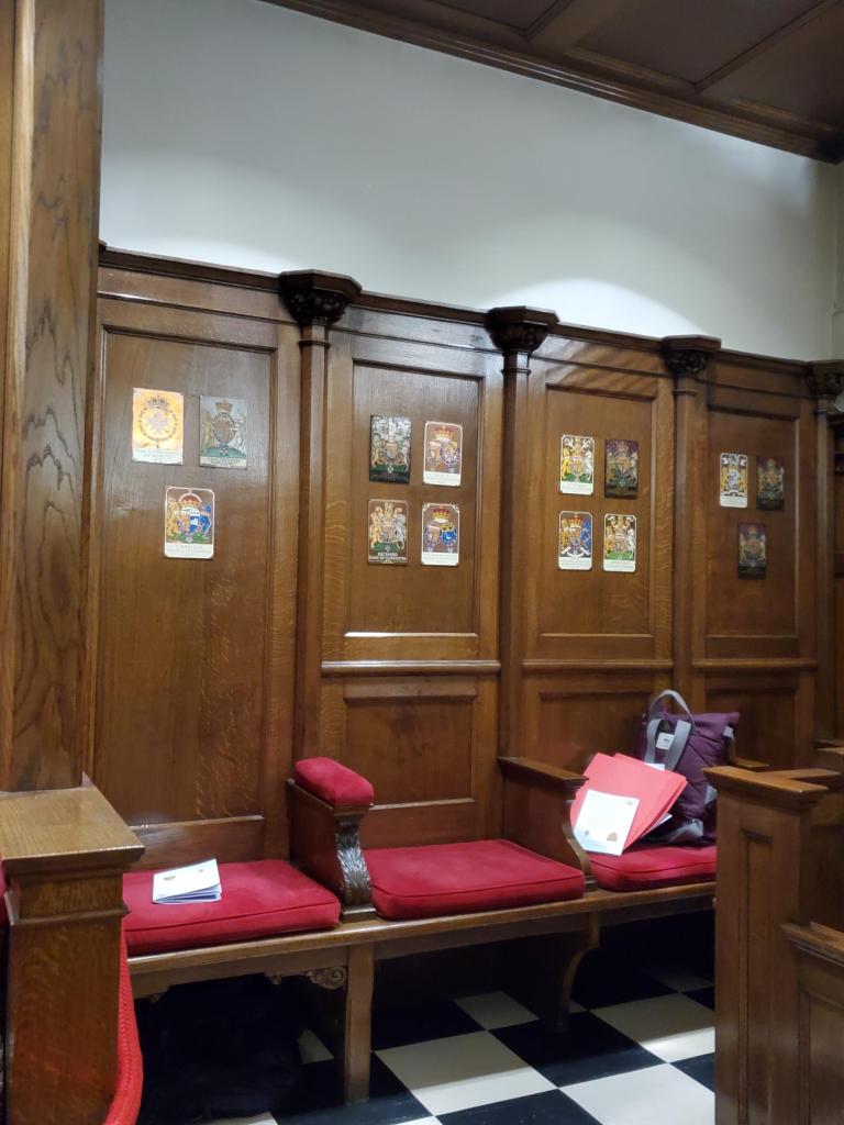 You can almost imagine the individuals who once occupied these seats, each carrying out their duties with diligence. Their heraldry remains here as a testament to lives spent in service.