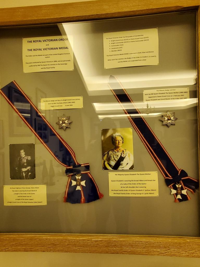 The RVM is unique because it honours personal service by staff who support the Royal Household directly, often throughout a lifetime. The photos in the display include historical figures wearing the ribbons and badges, underscoring the order’s strong ties to loyalty and lifelong commitment.