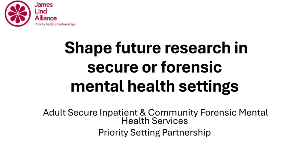Richard introduced a national project with the James Lind Alliance (JLA) aiming to identify the top 10 research priorities for secure and forensic mental health services across England, Scotland and Wales.