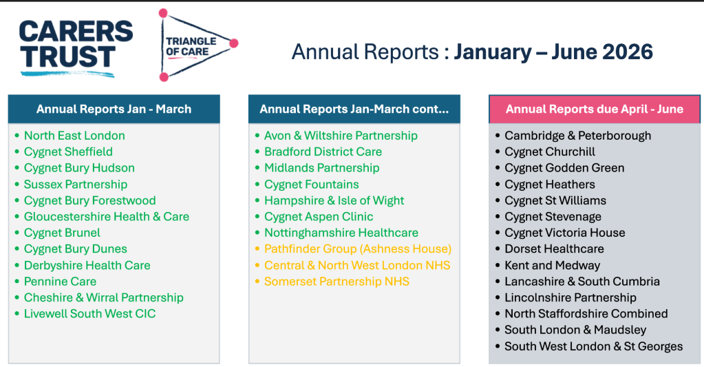 Below is a brief update of the group meeting, which was set as a national engagement space for carers to share experiences and influence Triangle of Care implementation and wider system change