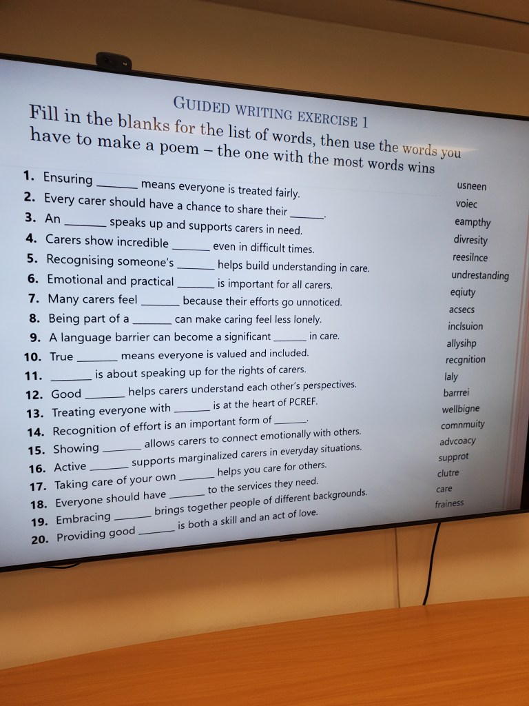 We then moved into our first round of performances, where carers shared both prepared and newly written work.