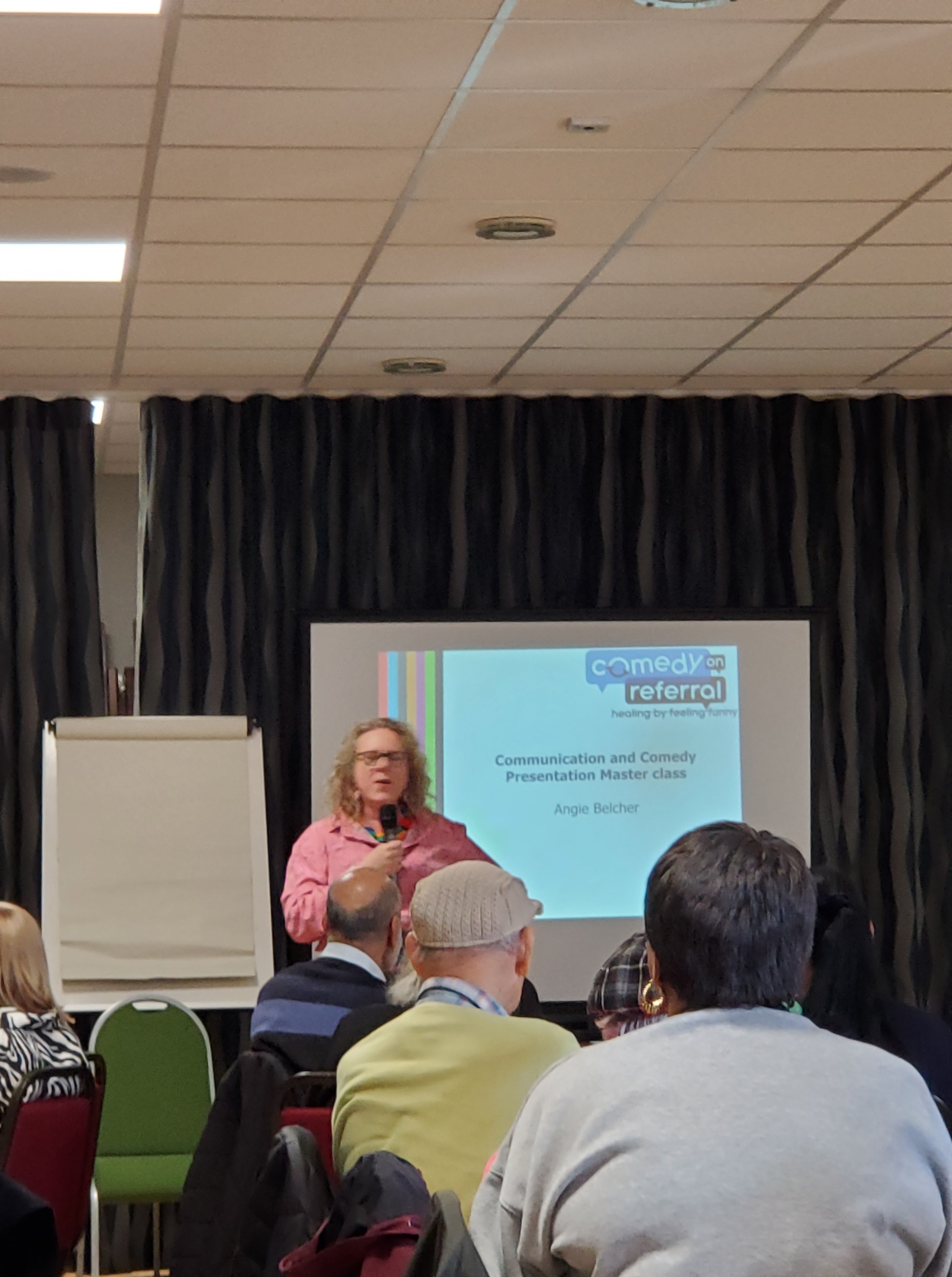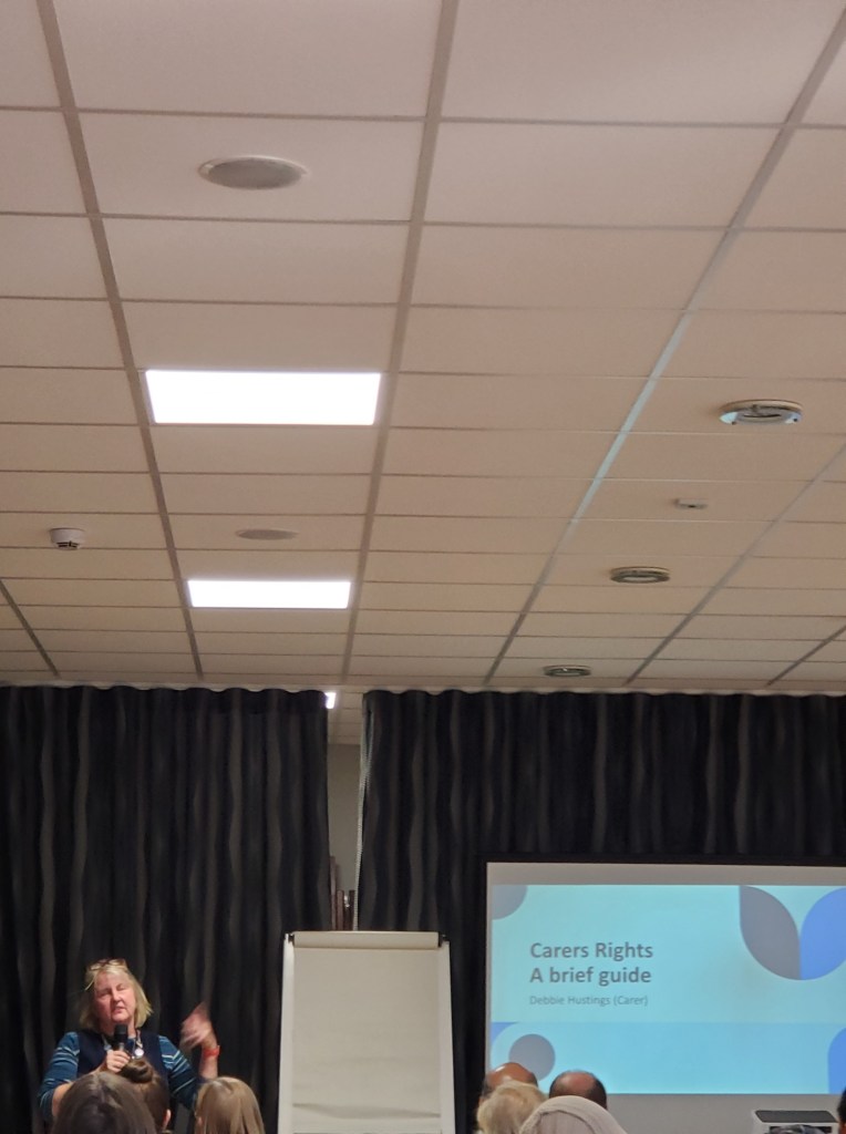 After the break, we got to hear from Debbie Hustings who is the new Triangle of Care lead for Carers Trust. Debbie used to be the former NHS England carers lead for London and has a wealth of experience when it comes to unpaid carers. Debbie presented on carers rights as she presented with her carers hat on. Next there was a comedy session from Angie Betcher who is a comedian at Bristol university, she is also skilled as a poet as well as a comedy performer.