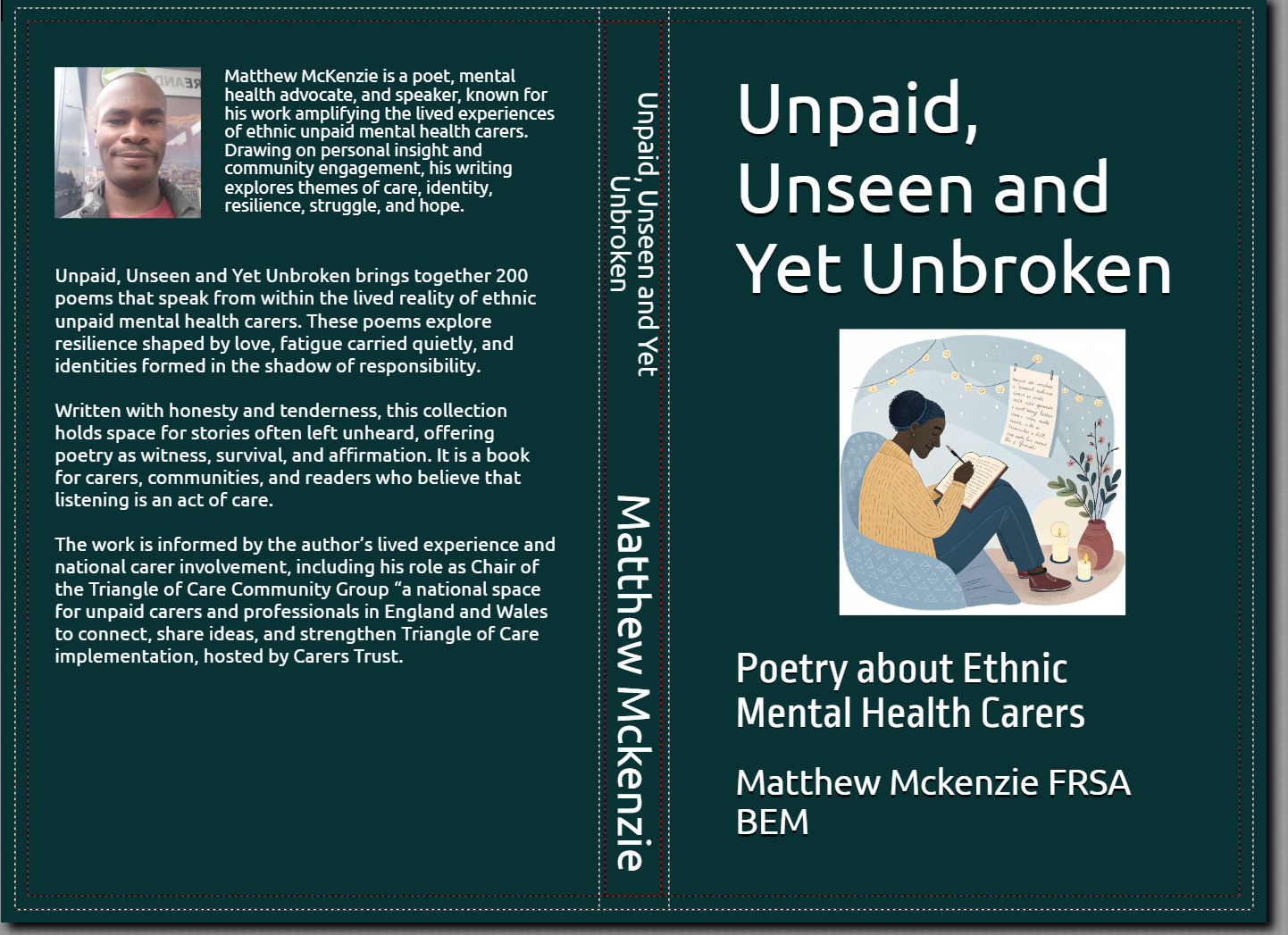 The collection will focus on amplifying minority carers’ experiences through poetry. It will be part of the paperback version of Matthew’s upcoming poetry book Unpaid, Unseen and Yet Unbroken and will include poems from carers all over the country. This is a unique opportunity for minority ethnic carers to have their voices heard and their stories shared on a national platform, contributing to the ongoing conversation about race equality, care, and mental health.